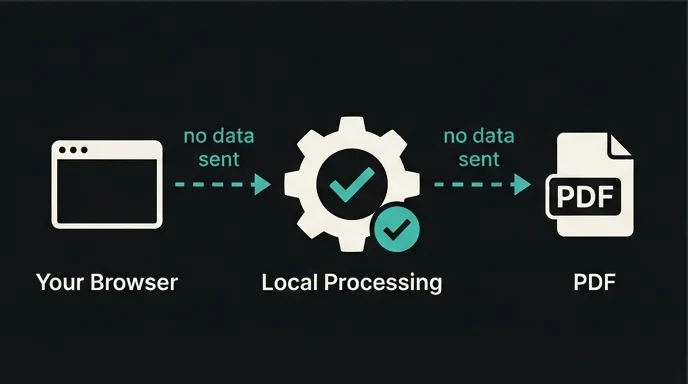 Modern browsers are powerful enough to run full applications locally — the same way a mobile app works without a constant server connection. The PDF is generated entirely inside your browser tab. Nothing is sent over the network. You can confirm this by watching the Network tab in DevTools during a conversion.